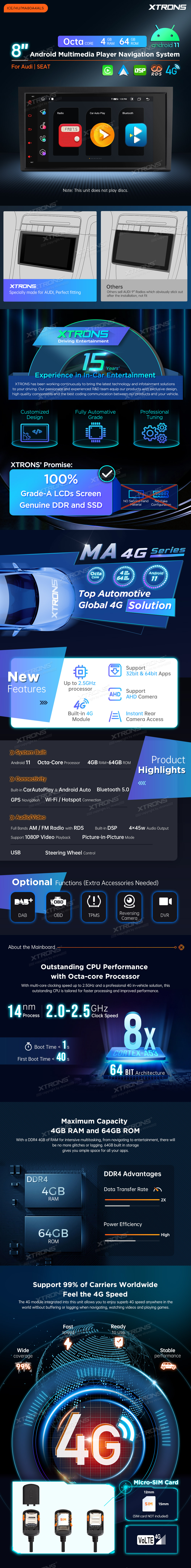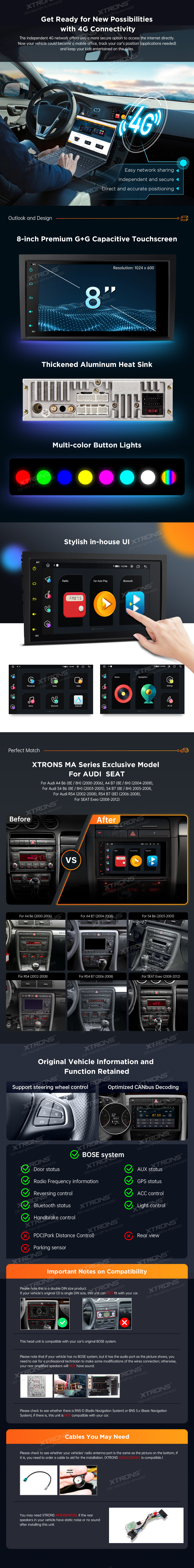 Sistema di navigazione per lettore multimediale Android 11 da 8 pollici con CarAutoPlay integrato e Android Auto e DSP per AUDI | POSTO A SEDERE