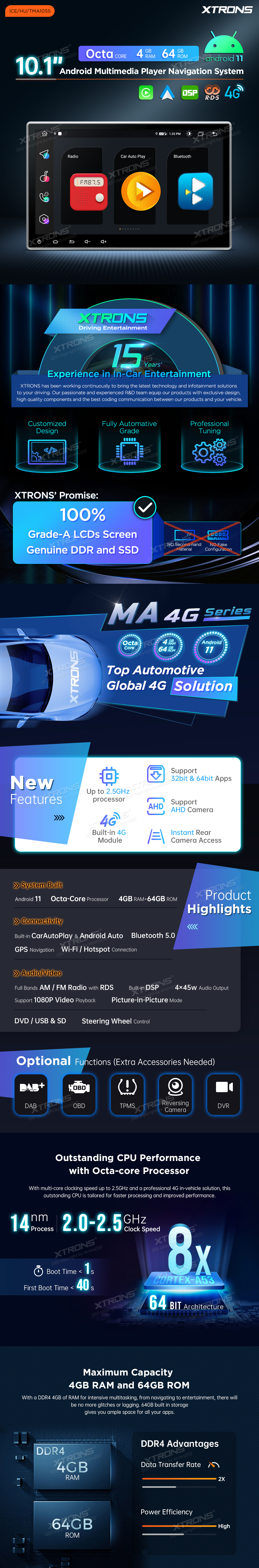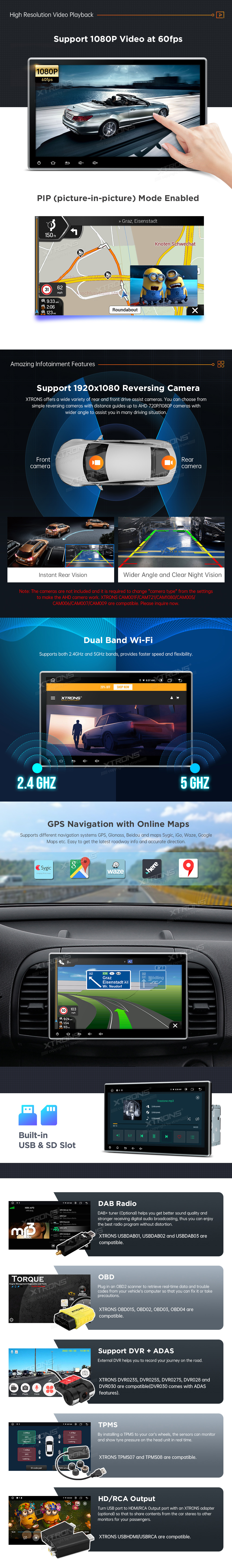-Radio DAB, OBD, DVR + ADAS, TPMS, Uscita HD/RCA, Immagine telecamera di retromarcia, DVR