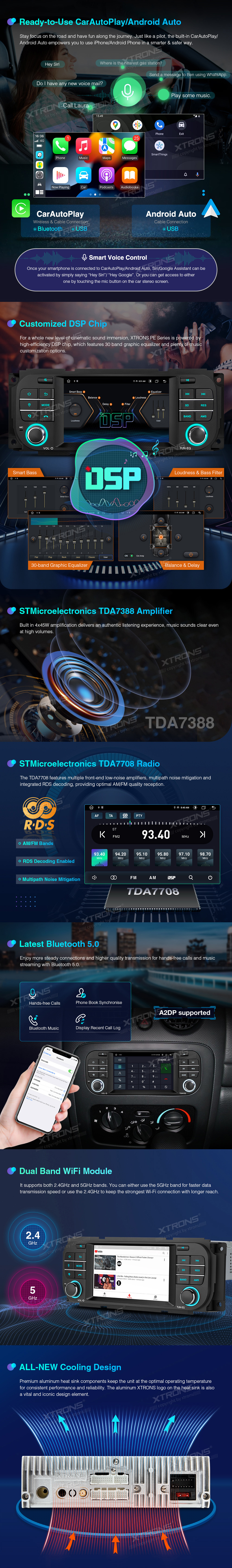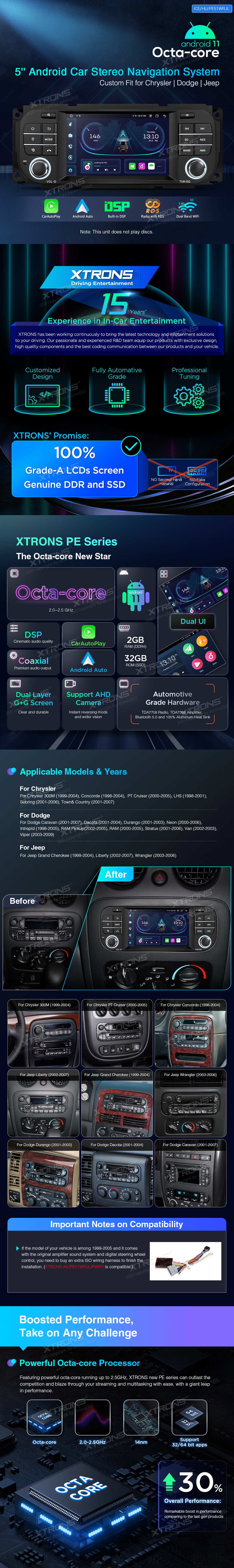 Sistema di navigazione stereo per auto Android 11 da 5 pollici con CarPlay integrato e DSP Custom Fit per Chrysler | Schivare | Jeep
