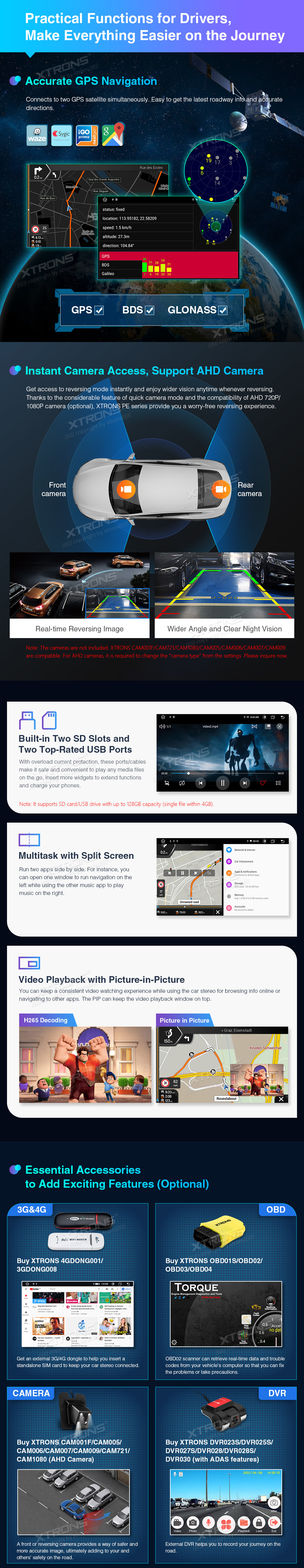-Internet 3G/4G, OBD, Fotocamera, DVR, DAB+, TPMS, USCITA HD, Uscita RCA, Microfono, Tastiera