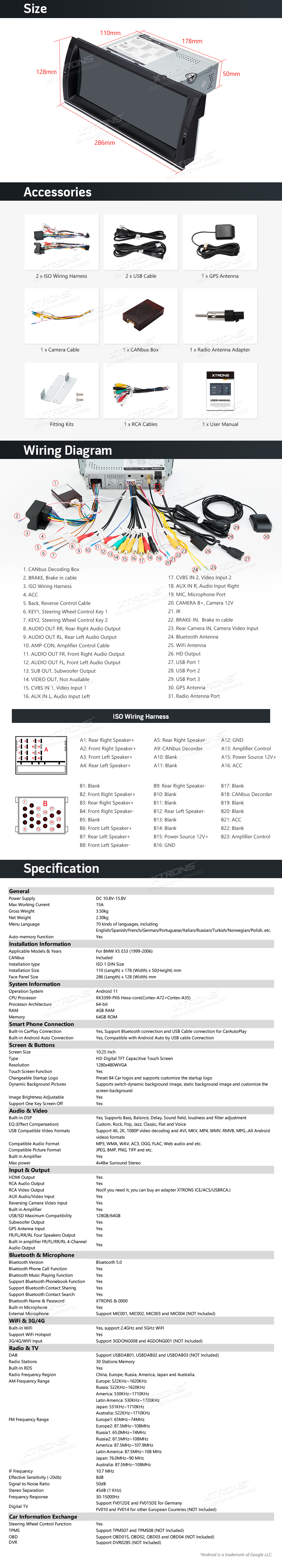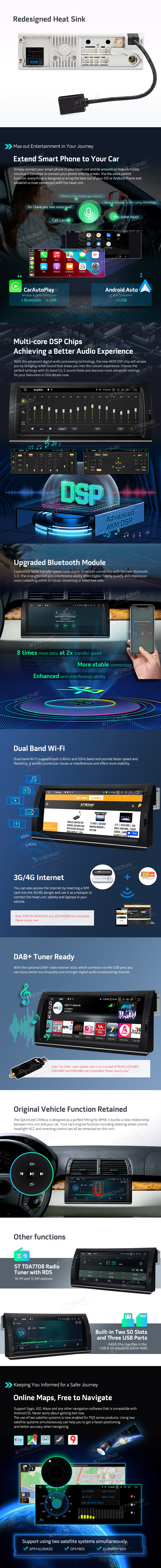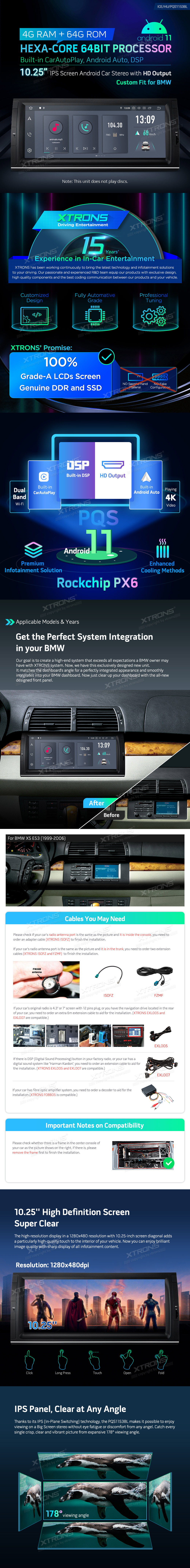 Schermo IPS da 10,25 pollici Processore Android 11 Hexa-Core 64bit 4G RAM + 64GB ROM Autoradio con uscita HD con Carplay integrato e Android Auto e DSP Custom Fit per BMW