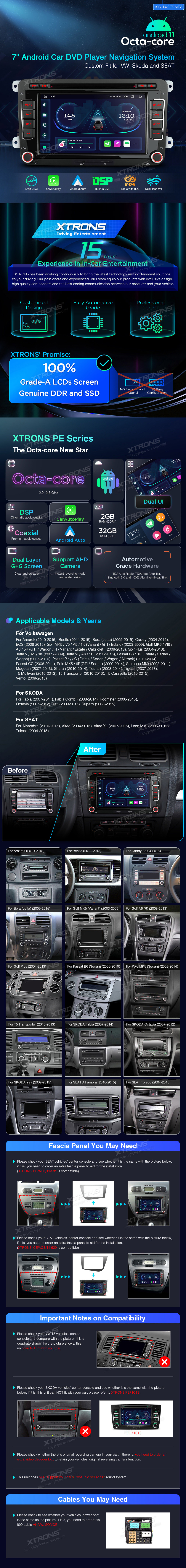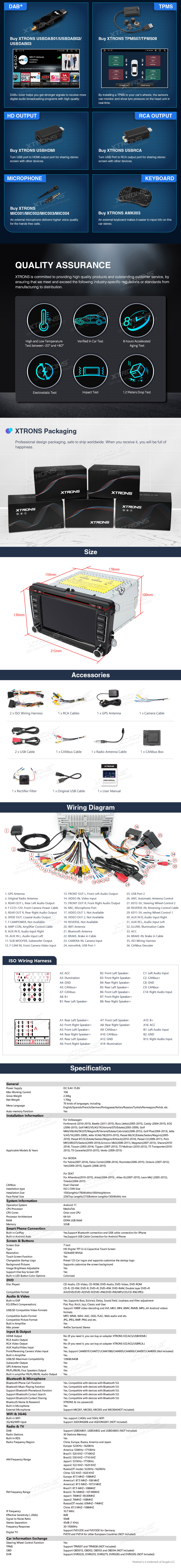 Sistema di navigazione per lettore DVD per auto Android 11 da 7 pollici su misura per VW, Skoda e SEAT