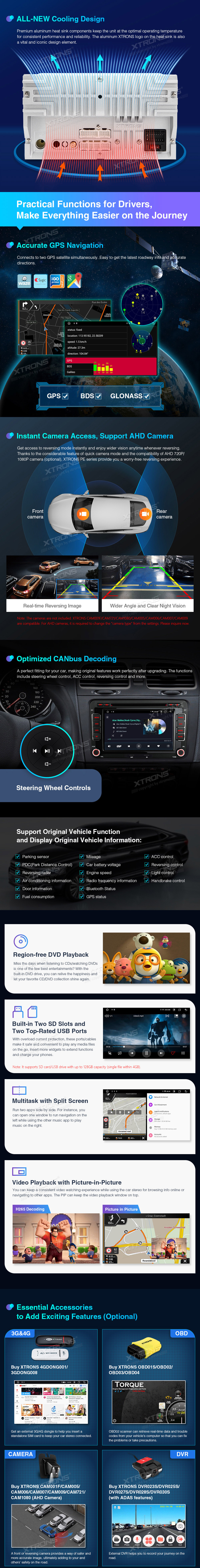 -Internet 3G/4G, OBD, Fotocamera, DVR, DAB+, TPMS, Uscita HD, Uscita RCA, Microfono e Tastiera