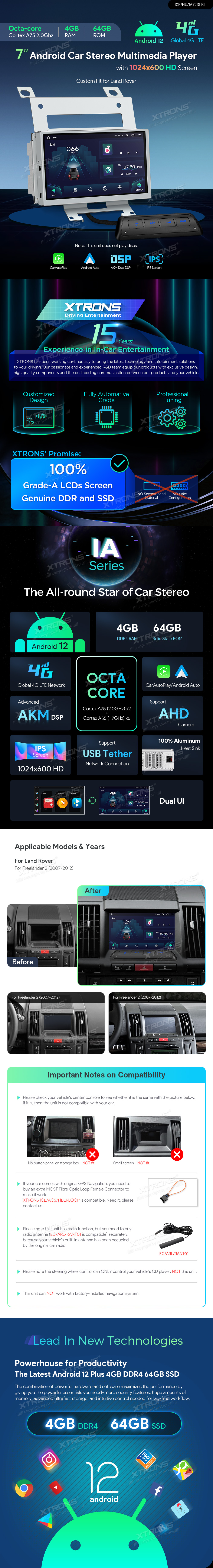 Lettore multimediale stereo per auto con navigazione Android da 7 pollici Octa-Core con schermo HD 1024 * 600 su misura per Land Rover