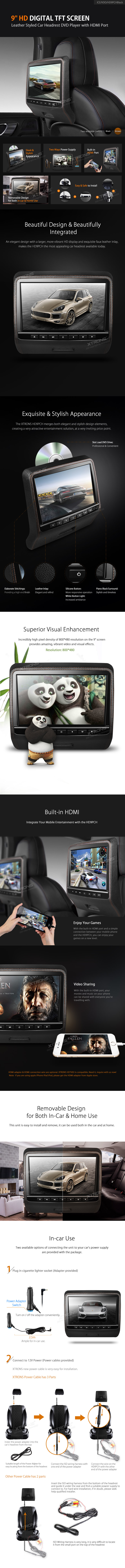 MONITOR POGGIATESTA SINGOLO 9 POLLICI HD PELLE NERO LETTORE DVD HDMI DIGITALE: